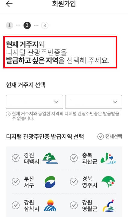 7. 본인인증 > 발급지역 선택