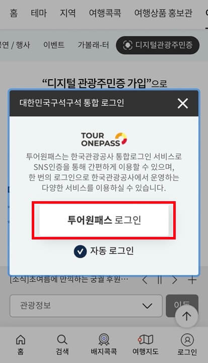 1. 디지털 관광주민증 발급 페이지 접속